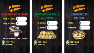 Set de imágenes para stories de whatsapp para microemprendimiento personal de un chef independiente. El trabajo se realizó en el año 2021.